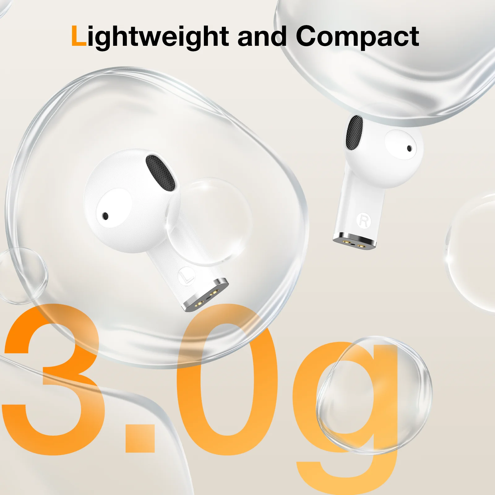 A single earbud weighs only 3g, making it as light as a feather. Ergonomic design provides a comfortable and secure fit that won’t stick out of your ears, especially for sports, workout and gym.