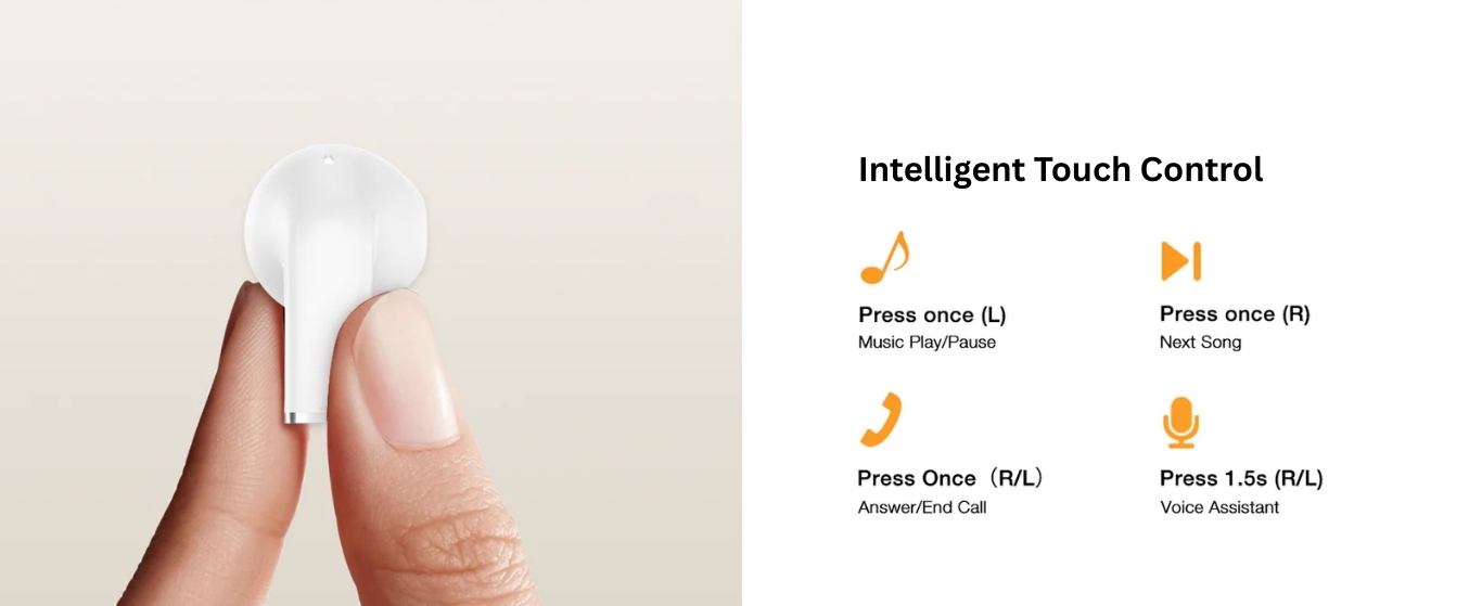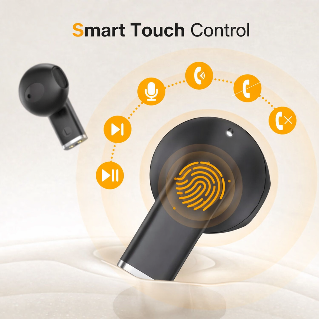 Wireless earbuds deliver 5H playtime (17H with case) with Bluetooth 5.3. Featuring IPX5 waterproofing, touch controls, and Type-C fast charging for active lifestyles.