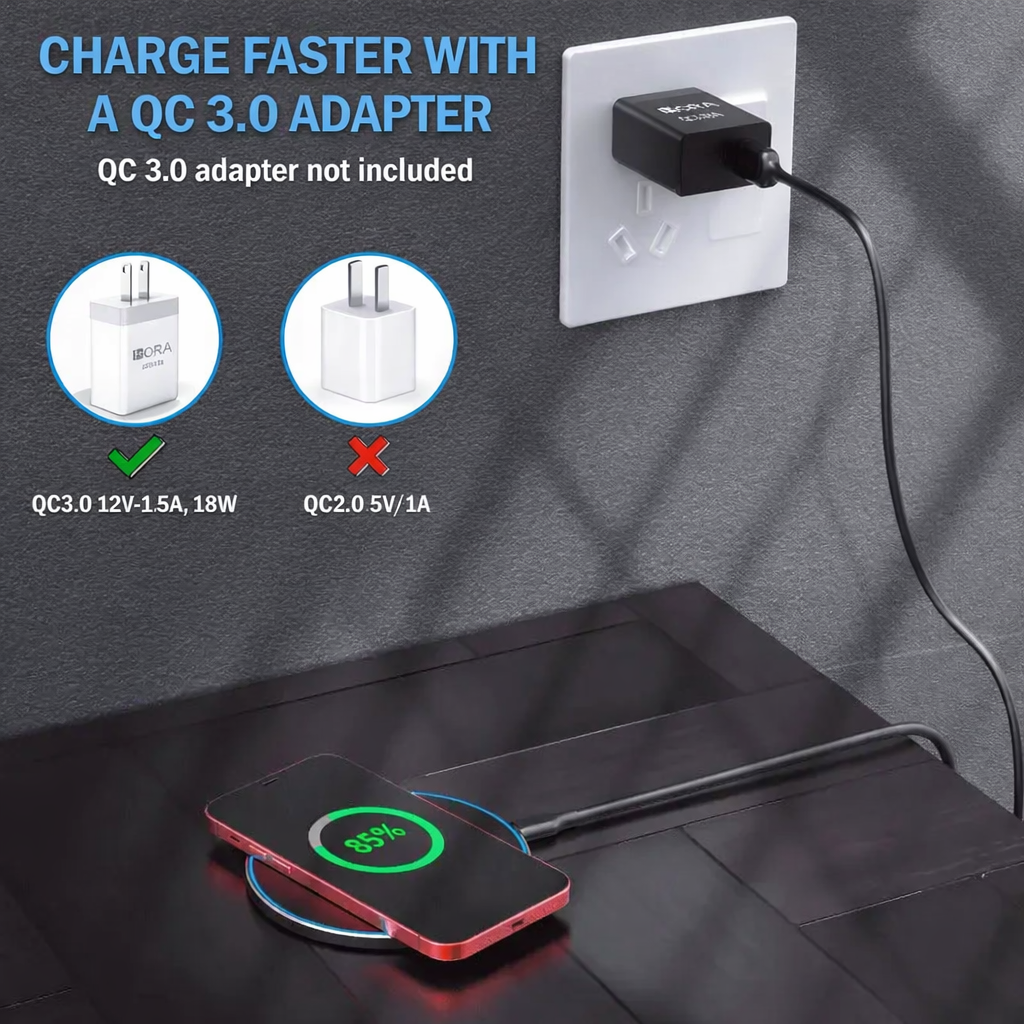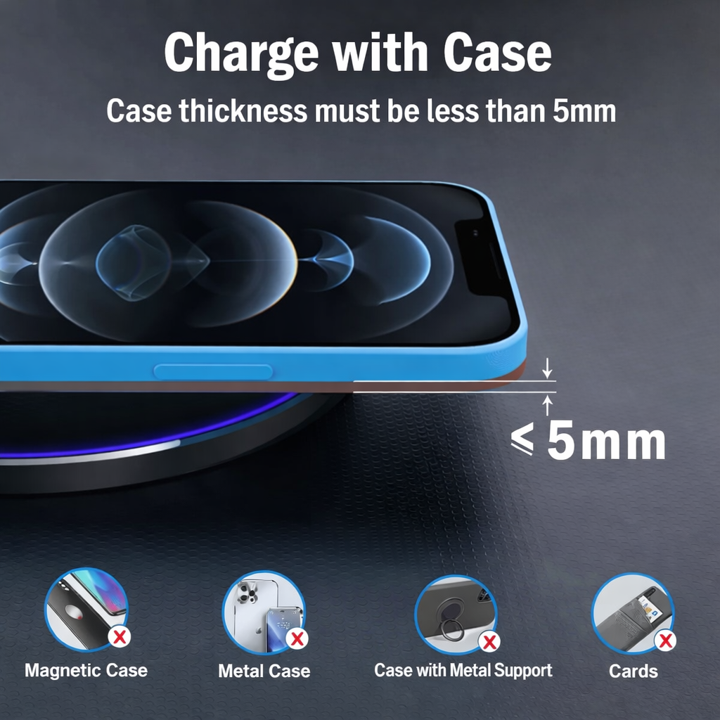Unique multi-function intelligent protection technology provides temperature control, surge protection and short circuit prevention. On top of that, these wireless chargers are made of fire-resistant ABS material, you can buy it safely. For a better experience, we would like you to remove the phone case and use the recommended adapters (NOT INCLUDED)