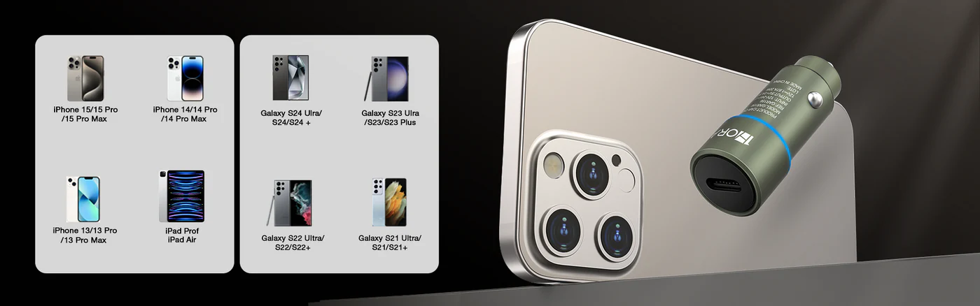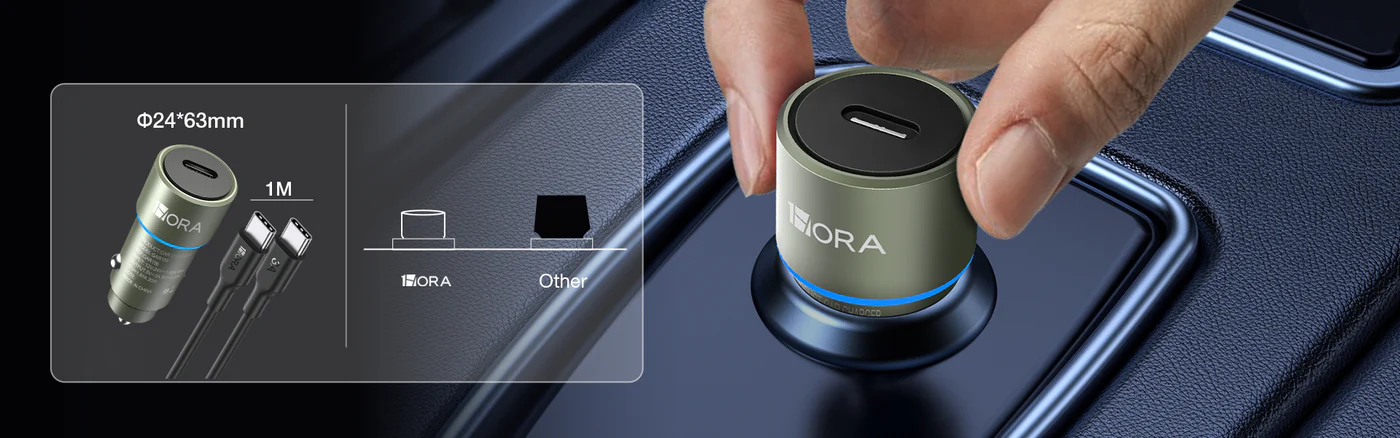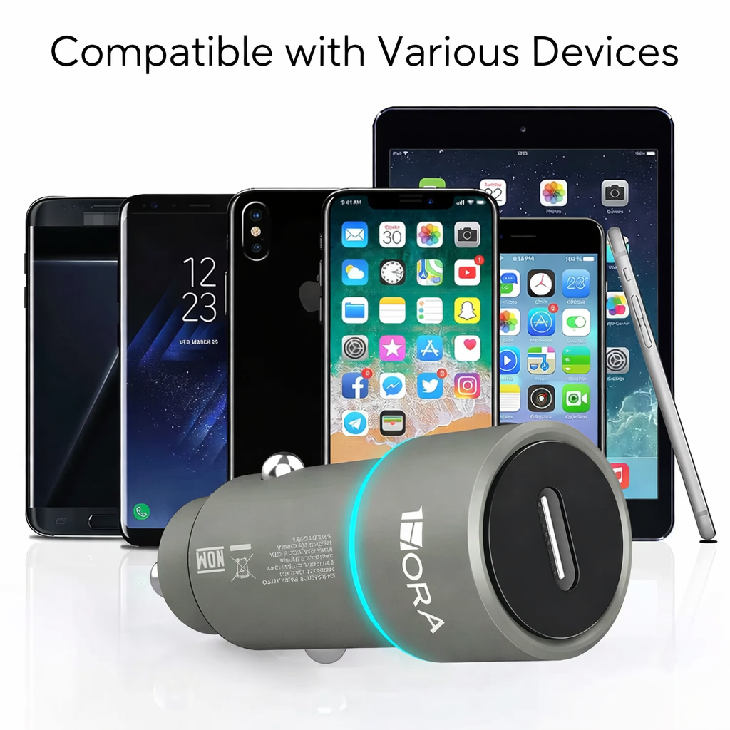 20W PD Car Charger With Type-C Port. Delivers Fast Charging For Smartphones/Tablets With 12V-24V Vehicle Compatibility.