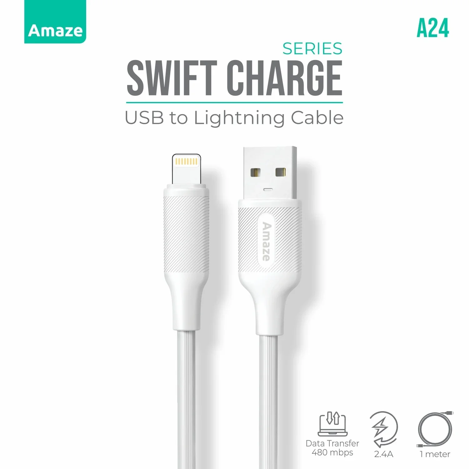 The Amaze Swift Series Apple Lightning Cable supports fast charging up to 2.4A, allowing you to power up your iPhone and other Apple devices quickly with less waiting time. Designed with a secure Lightning connector, it ensures a stable, reliable connection without interruptions.