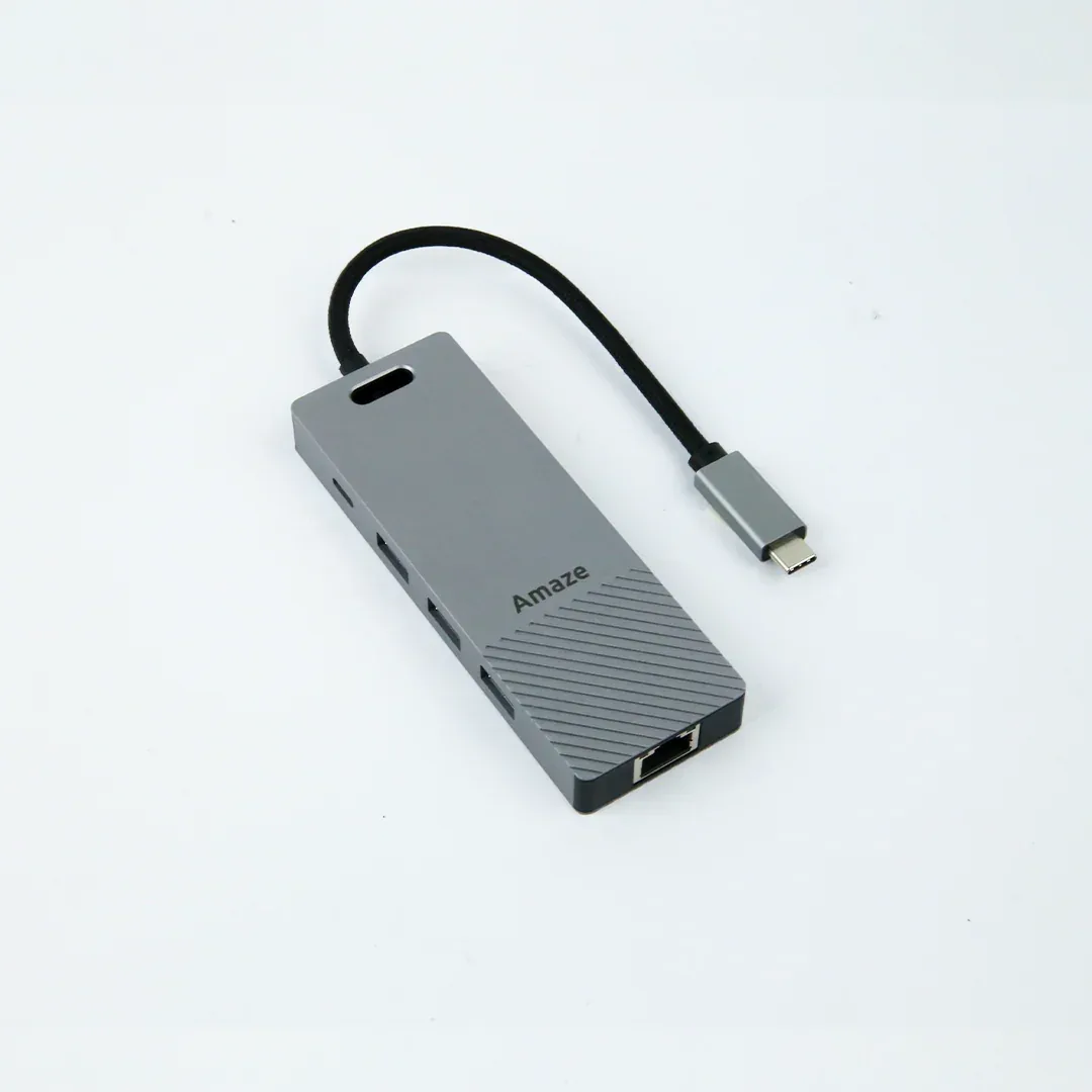 The Amaze Alloy Series 8-in-1 Multiport Hub is a comprehensive hub that expands the connectivity of USB-C devices, offering an array of ports ideal for both professional and everyday use. This multiport hub is designed with an aluminum alloy casing for durability and efficient heat dissipation, making it sleek and portable.