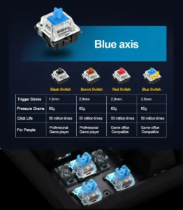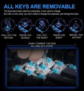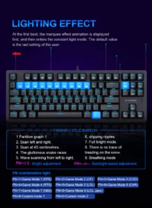 2. The keyboard Adopts Two-Molor Mold Keycaps To Avoid The Abrasion of The Key Characters By Sweat, And It Is Durable