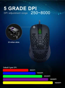6.Mouse Resolution 500-4000 DPI.(500/1000/2000/3000/4000)