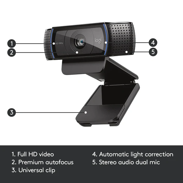- Logitech C920 PRO HD Webcam with 5-foot cable