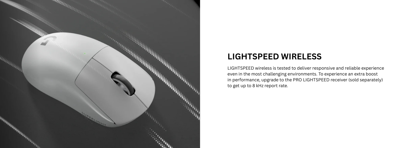 - Wireless report rate: 1000 Hz (1 ms)