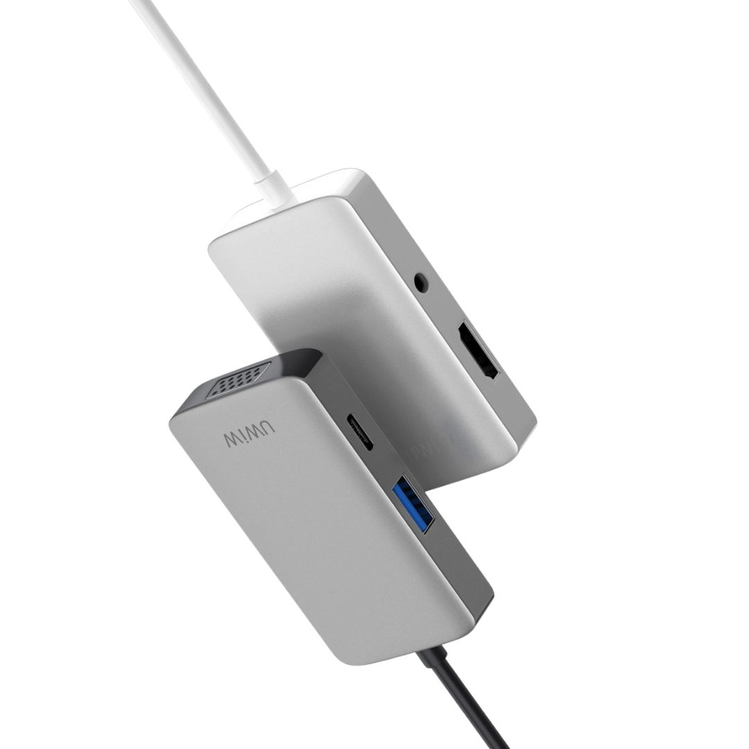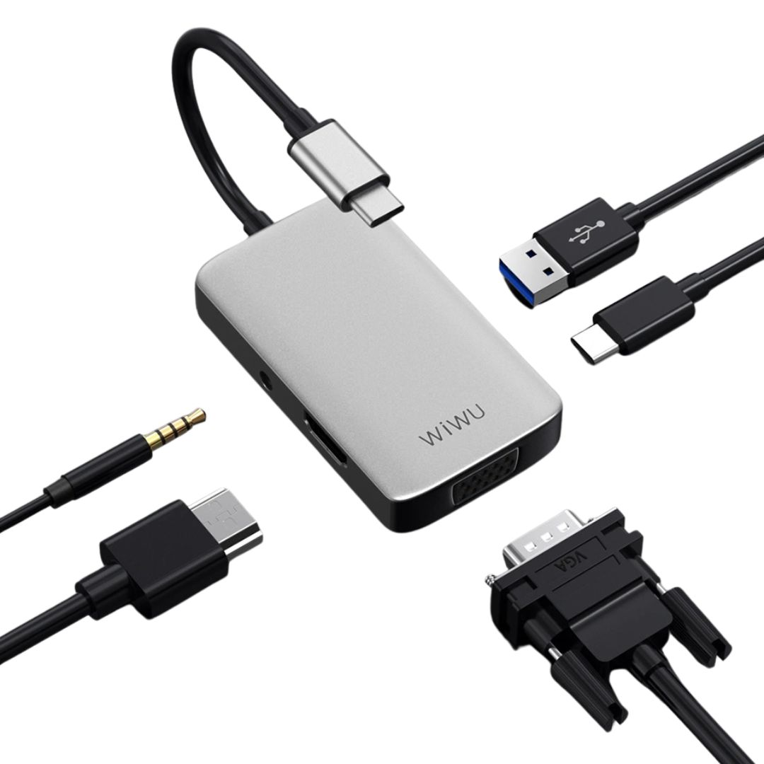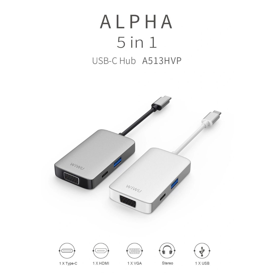 WIWU ALPHA 513HVP TYPE-C To 5 IN 1 HUB – 1xHDMI, 1xVGA, 1xUSB 3.0, 1xStereo, 1xType-C