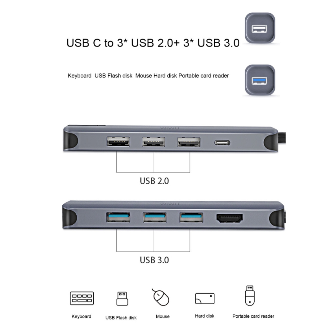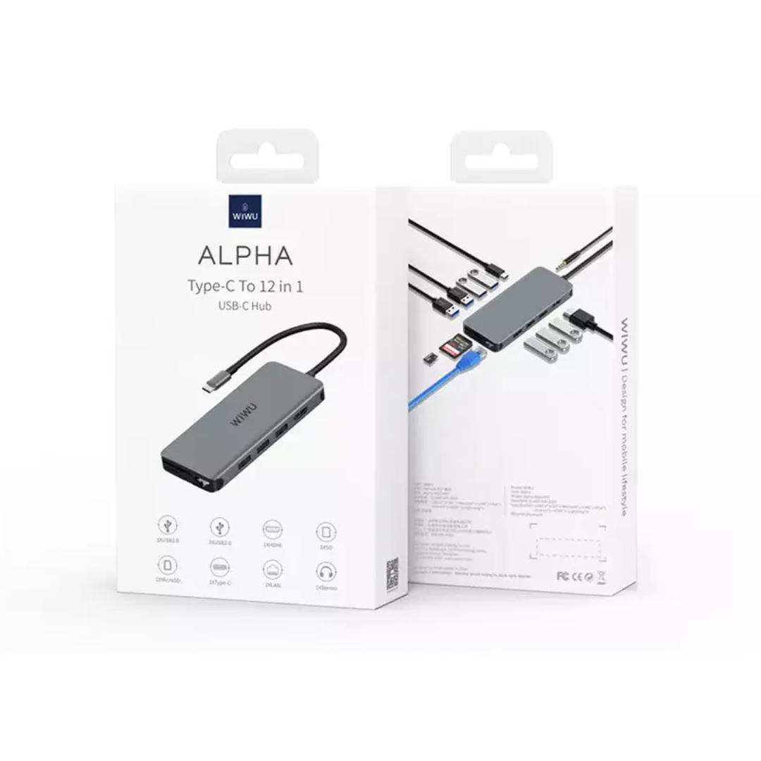 WIWU Alpha Type-C to 12 In 1 Multi Hub – USB 3.0*3+ USB 2.0*3+ HDMI*1+ SD*1+ MicroSD*1+ Type-C*1+ LAN*1+ 3.5mm Stereo*1